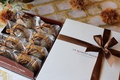 原材料名:バター(国内製造)、粉糖、アーモンドプードル、卵、渋皮栗、小麦粉、チョコレート、けしの実/乳化剤(大豆由来)