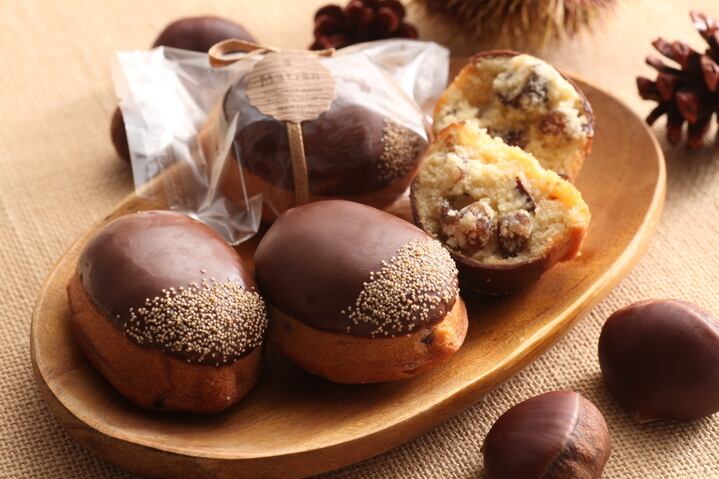 原材料名:バター(国内製造)、粉糖、アーモンドプードル、卵、渋皮栗、小麦粉、チョコレート、けしの実/乳化剤(大豆由来)