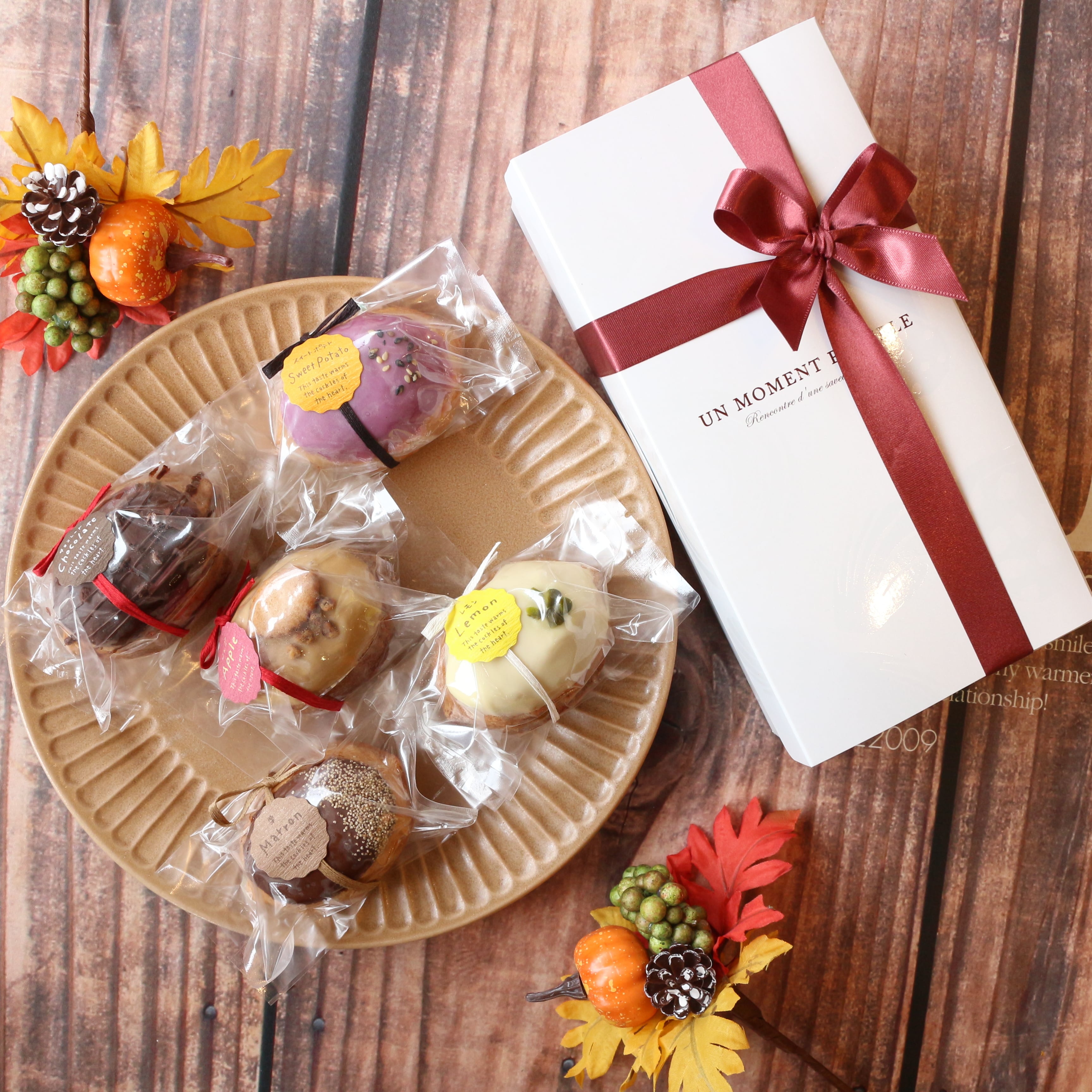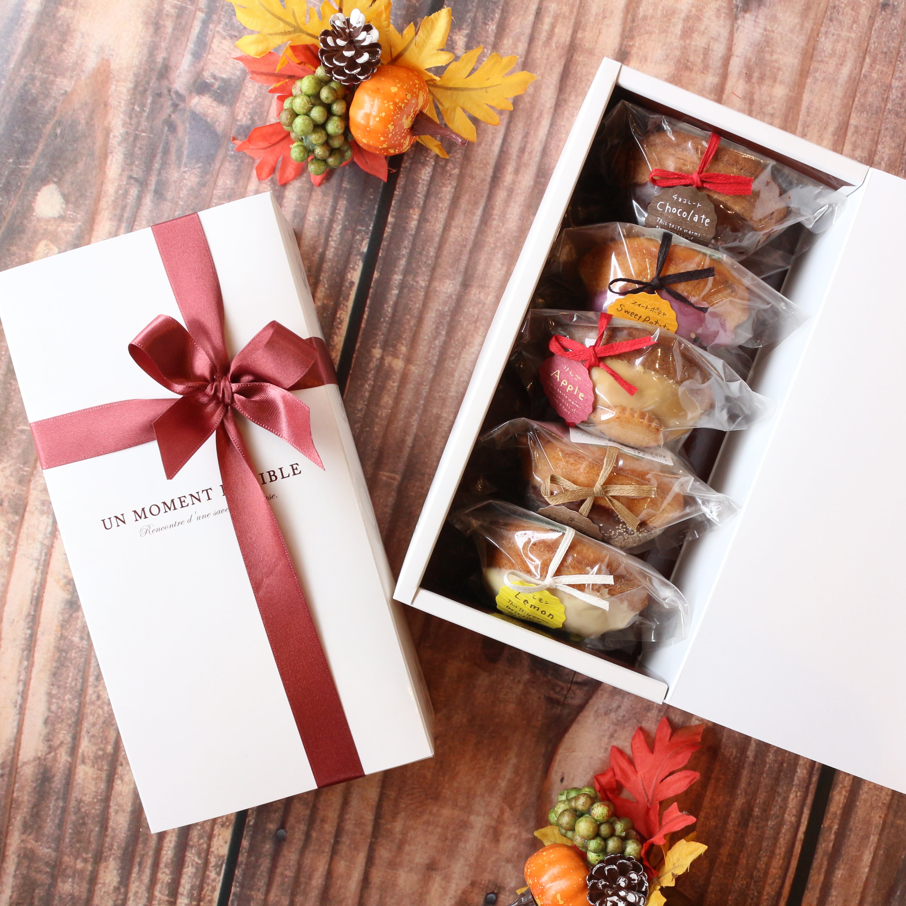 【さつまいもケーキ】【マロンケーキ】【キャラメルりんごケーキ】【カカオケーキ)】【レモンケーキ】の5種類セットです。